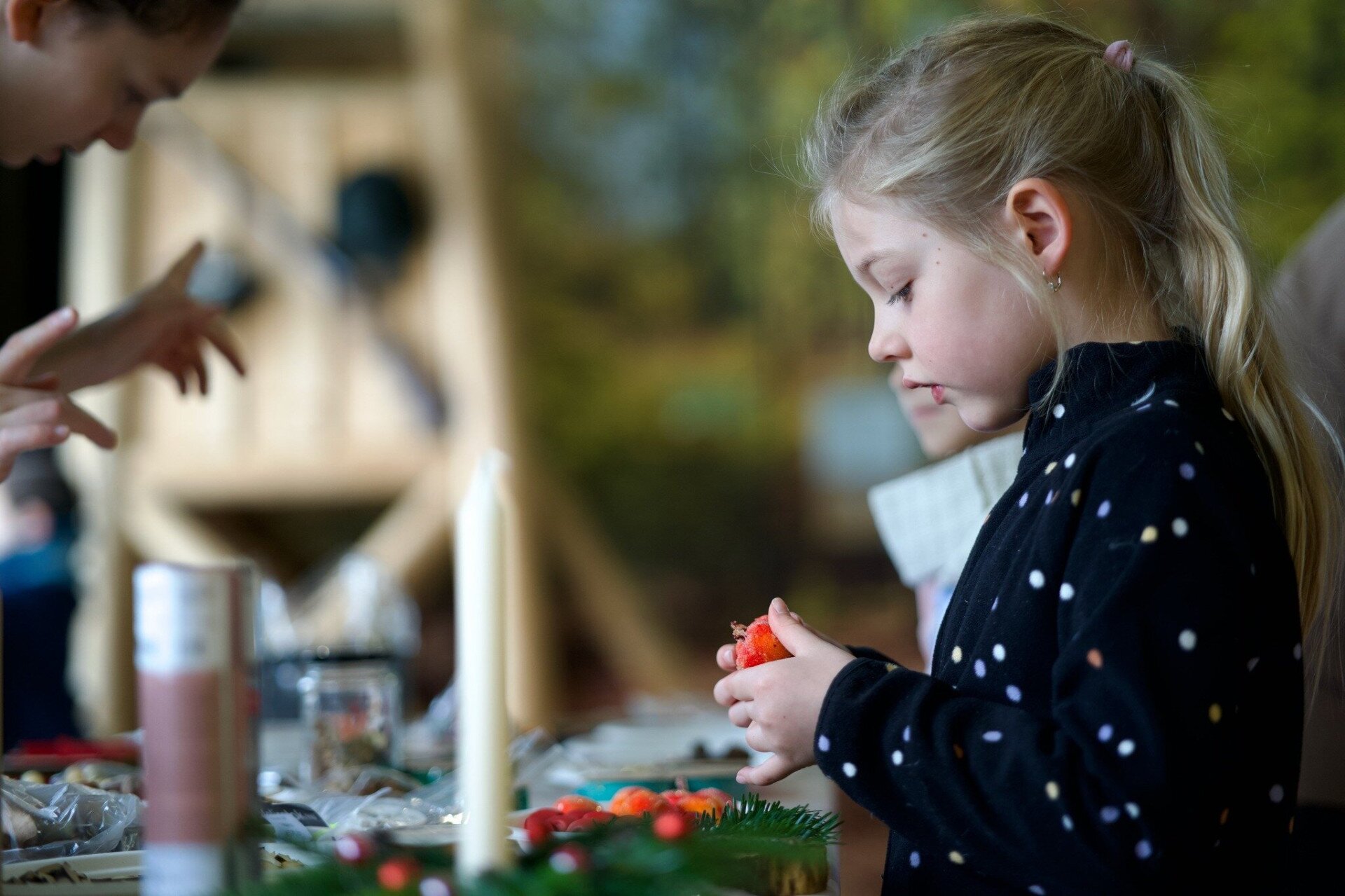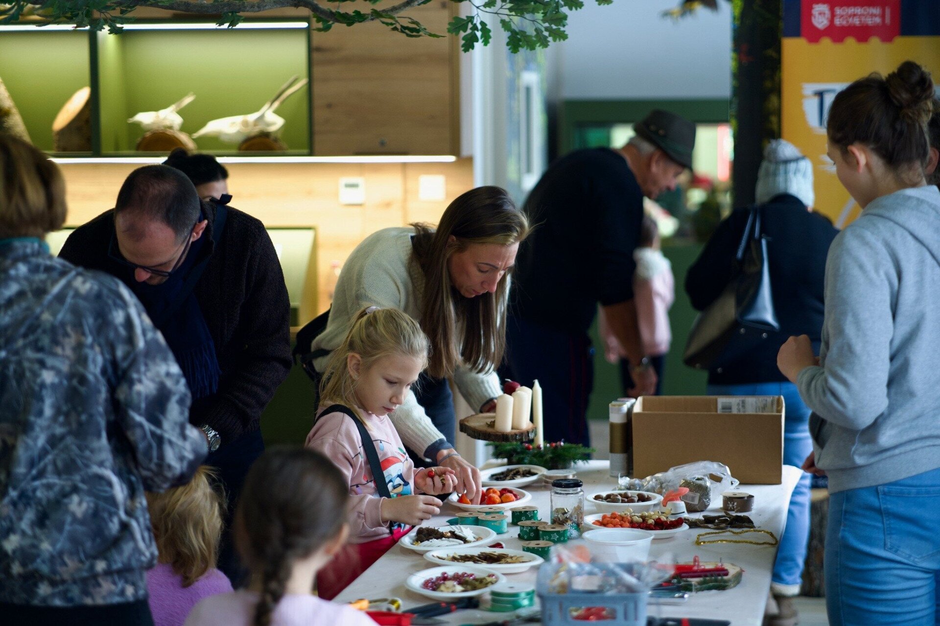A szombati program a téli erdő világát bemutató szakvezetéssel és látványetetéssel indult a vadasparkban, majd a bemutatóteremben kreatív kézműves-foglalkozással folytatódott. Az “adventi workshop” keretében lehetőség volt ünnepi asztal-, ajtó- vagy akár karácsonyfadísz készítésére az erdő ajándékaiból.