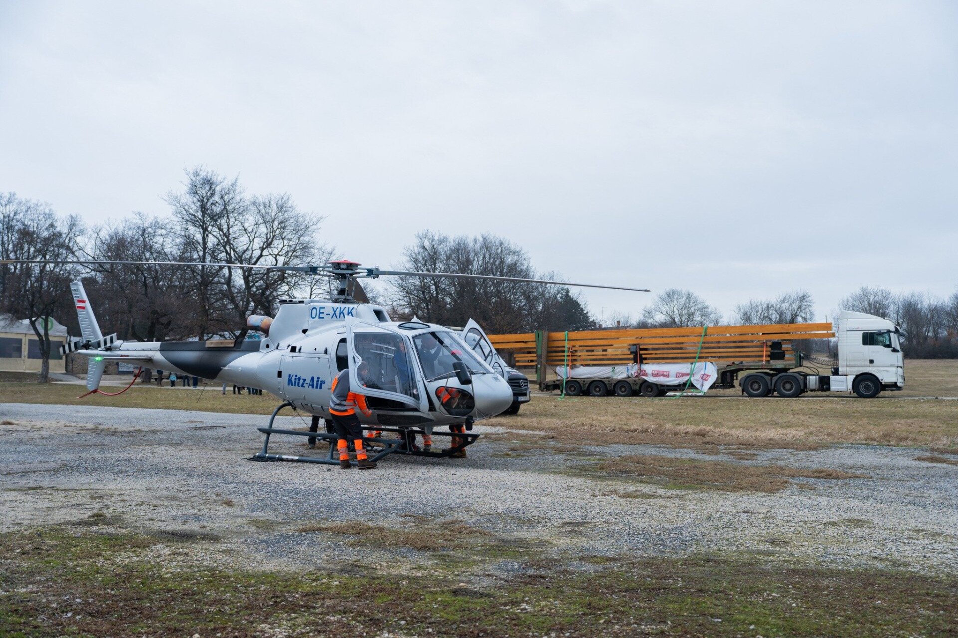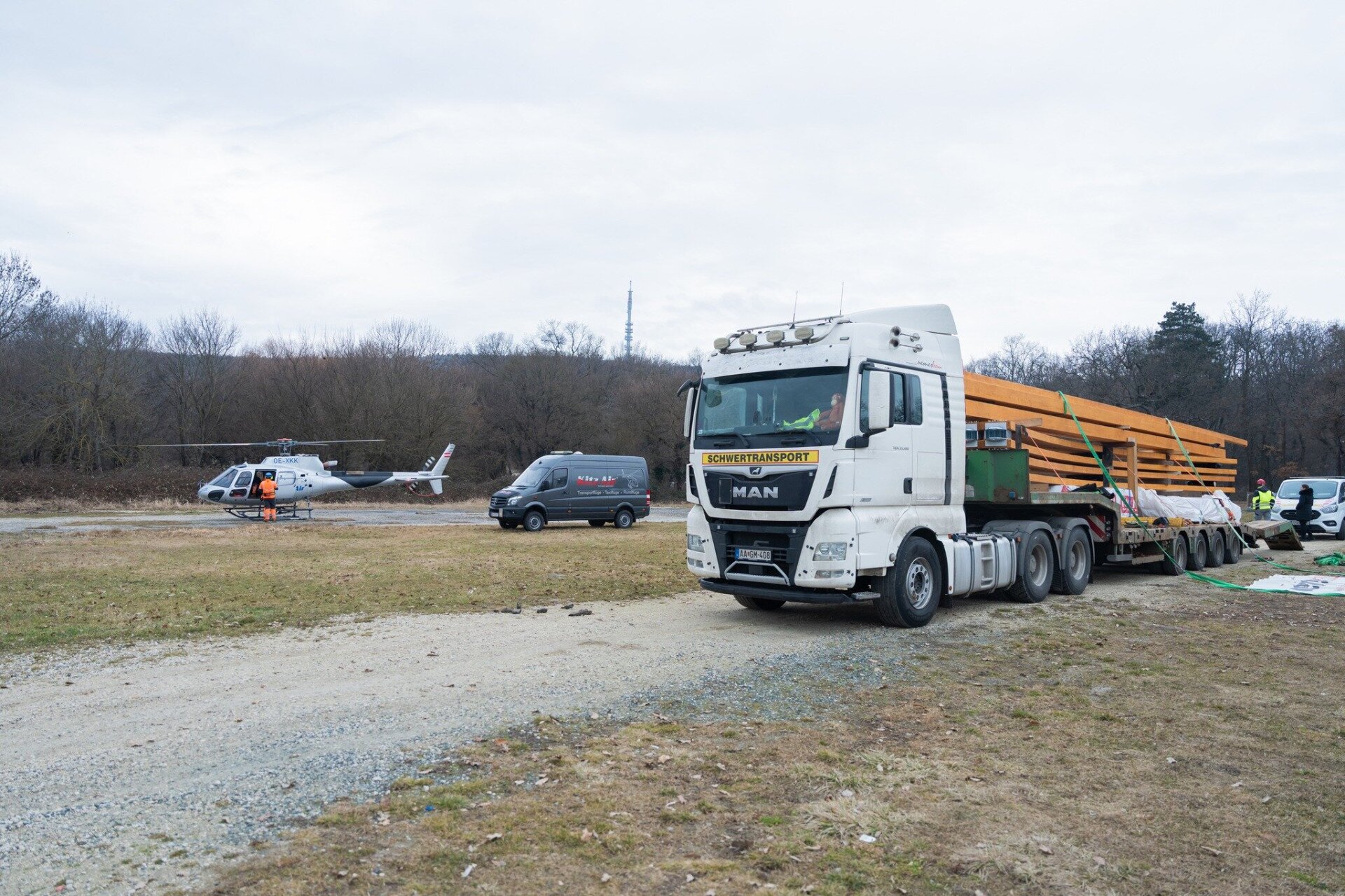 Helikopterrel szállították a Várhelyre az épülő új kilátó szerkezeti elemeit