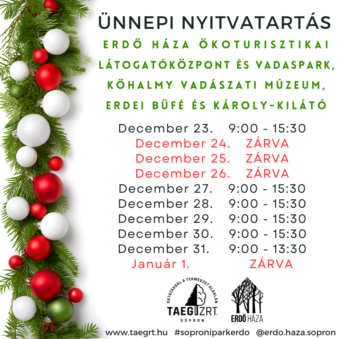 Ünnepi nyitvatartás a Soproni Parkerdőben