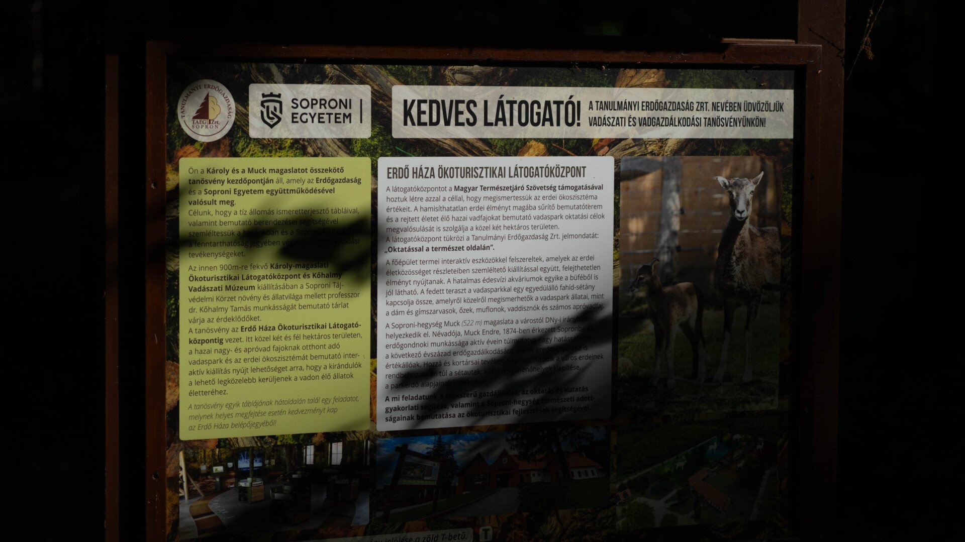 Az első tanösvény az országban abból a szempontból, hogy nem csupán izgalmas interaktív információs táblákból áll, hanem a gyakorlatban használt vadgazdálkodási berendezések is megtekinthetők és kipróbálhatók rajta. A Soproni Parkerdő legforgalmasabb pontjáról, a Károly-magaslati parkolótól induló, közel 4 km hosszú tanösvény a vadászat és vadgazdálkodás rejtelmeibe vezeti be a túrázót.