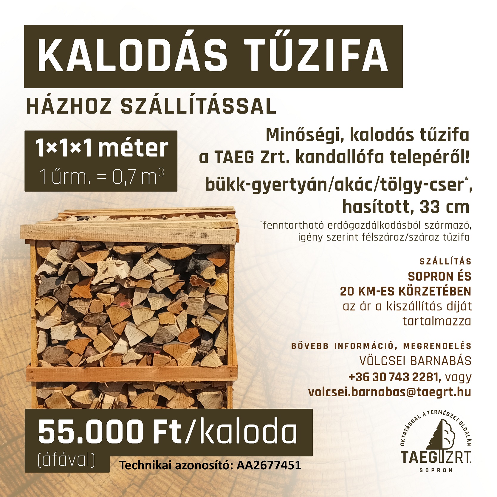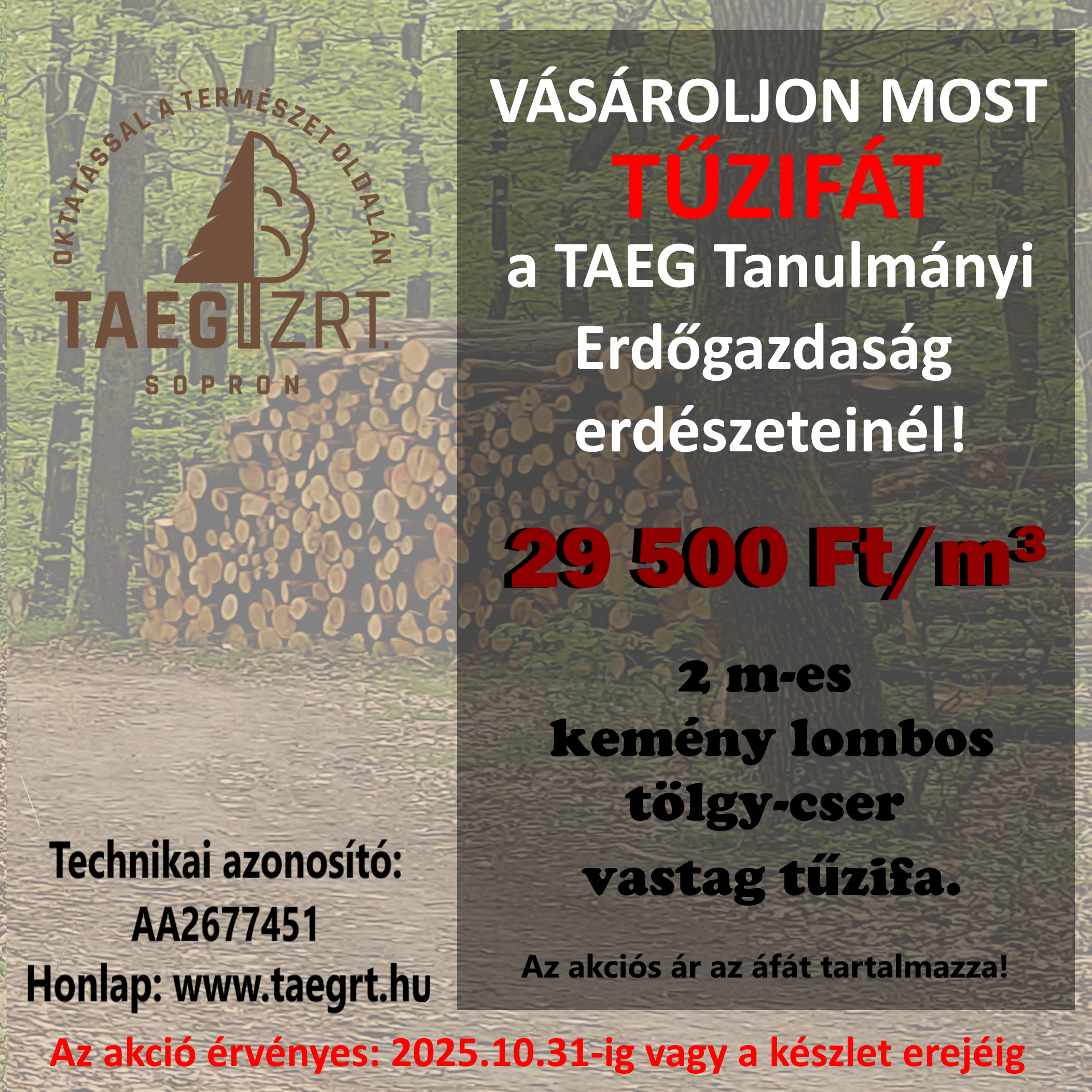 Vásároljon tűzifát a TAEG Tanulmányi Erdőgazdaság Zrt-től.